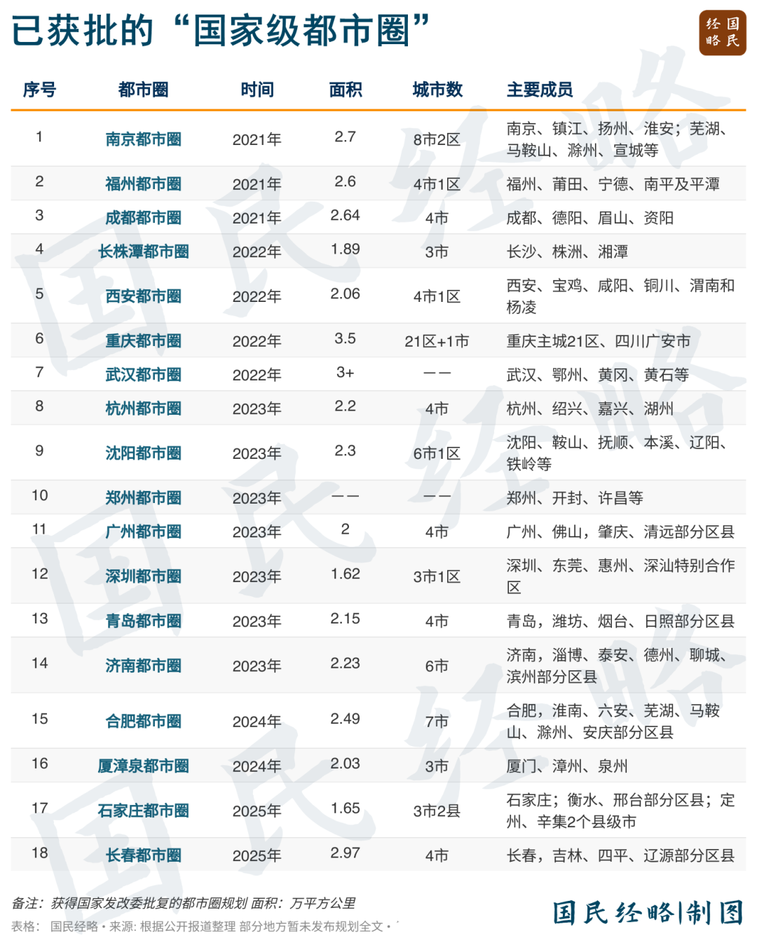 随着石家庄、长春都市圈接连获批,国家级都市圈已扩容到18席。