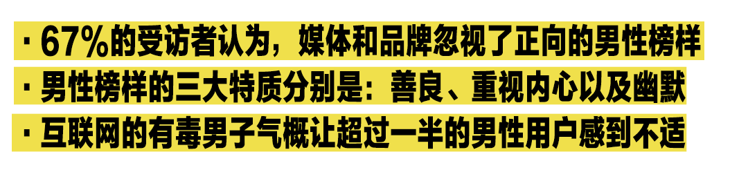 “70%的受访者希望在社交平台上看到更多男性榜样的内容,同时67%的受访者认为,现在很多正向男性榜样被媒体和品牌忽视了。”