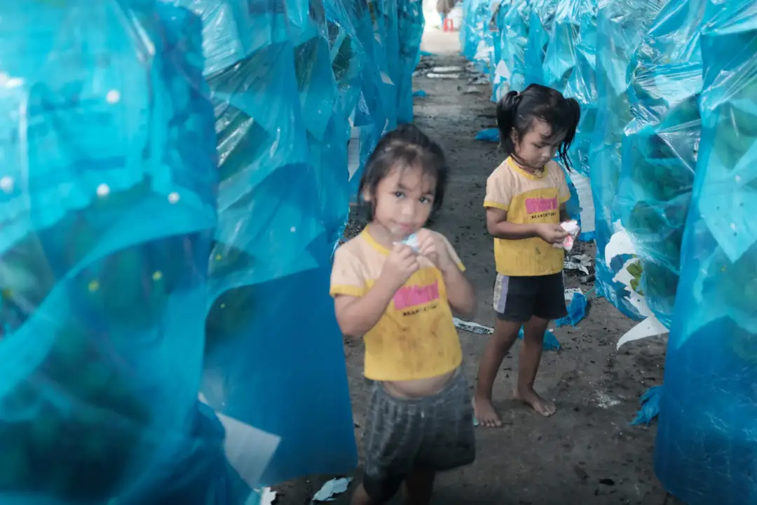来越南后,我看到阿环不再是那个快乐的新娘,憔悴、臃肿、穿着睡衣来上班。睡衣下方,妊娠纹毫不收敛地爬满肚子。她在打包厂工作——香蕉被整齐排放进纸箱,她拿改装的吸尘器抽出包装袋里的空气,香蕉在她手里有了一层紧致的保护,以应对海上航程而不至于腐烂。在流水线运转,长时间的站立让阿环背部疼痛。除了春节,工人没有假期,更没有产假。做一天工才有一天的钱。农场的女人除了怀孕、生产,也几乎不停歇地工作,夫妻双方一起赚钱寄给老家的孩子和老人。阿环一直工作到孕期的第八个月。