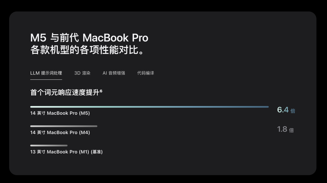 这样一来,M5的AI性能——尤其是本地AI性能,就有了相当坚实的基础。