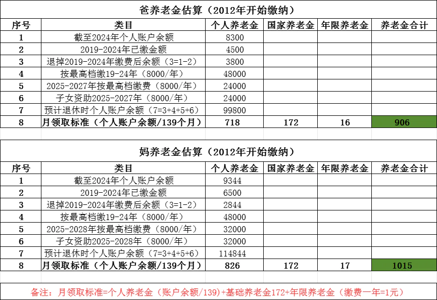 一位成都的朋友,给父母缴纳的养老保险金额是逐年提升的,每年涨1000元左右,至退休时两人合计每月可以领取三千多元;