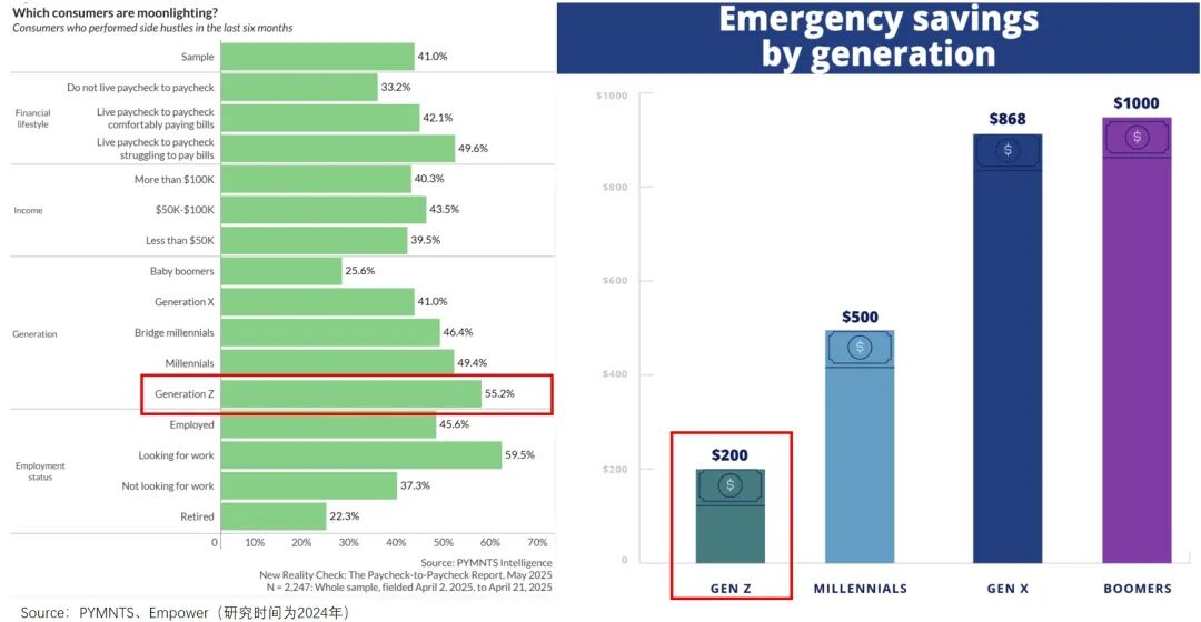 这不仅是福特工人的困境,也是北美年轻一代的缩影。相关报告显示,超半数美国Z世代身兼多职,副业收入占到了他们总收入57%,尽管如此,许多人兜里仍存不够200美元。