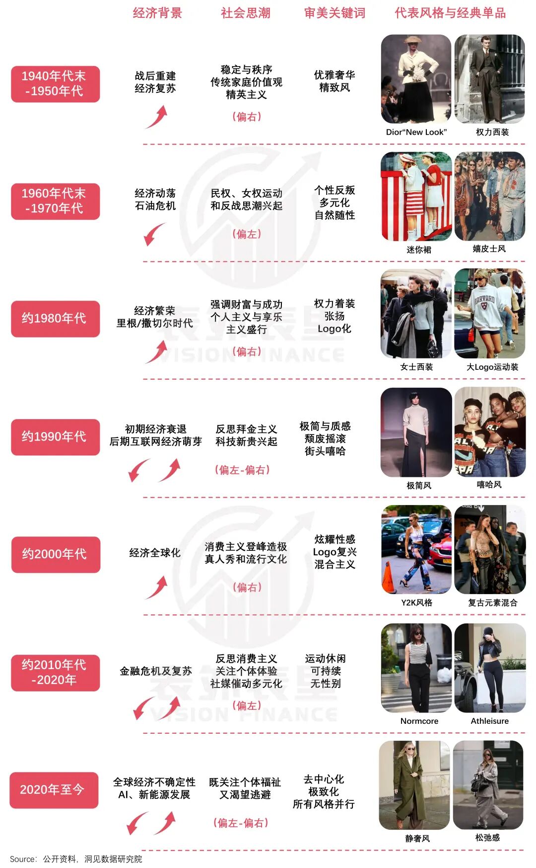 从更长的维度看,时尚也是一种周期轮回:当经济上行、保守主义占上风时,权力、地位开始主导审美;而经济动荡、社会思潮强调公平时,时尚则化身个人自由表达的载体,包容与舒适成为新美学。