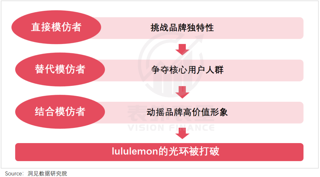 而当模仿者们让lululemon变得触手可及,买一条瑜伽裤就能获得Super Girls的身份认同和社会标签也不复存在,“瑜伽爱马仕”的光环被大大削弱。
