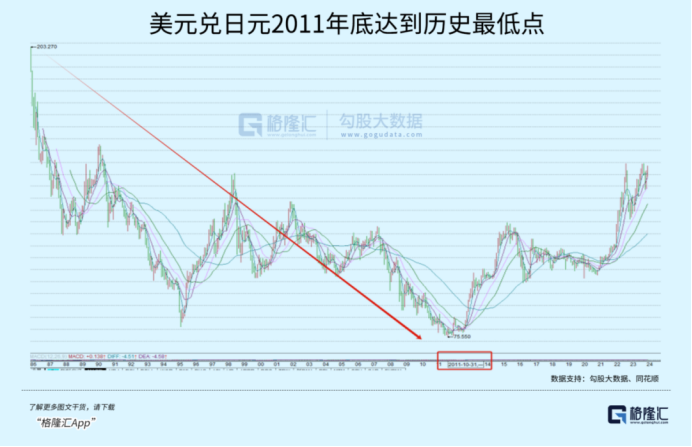 于是从1985年到2011年,日元汇率暴涨,美元兑日元一路从300多跌到75。