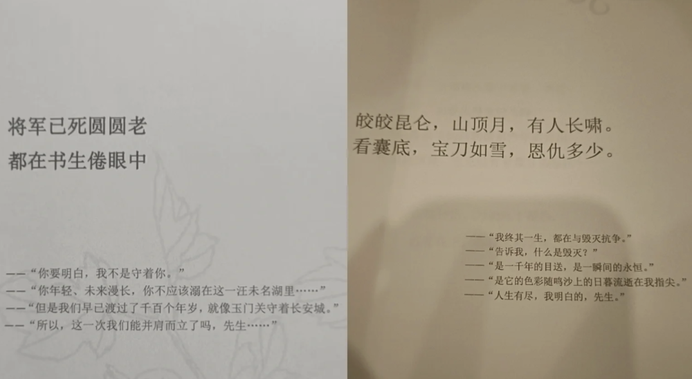 在小小的房间里憋着开了八小时的会,但与剧本里横跨几十年的爱恨起伏相比也显得短促。到了最后的沉浸演绎环节,长长的会议桌上已经快堆不下那么多沾满眼泪的纸巾了,之前还在一起插科打诨的工作人员摇身一变,身着藏袍的清秀男子在荡气回肠的音乐里缓慢转身,背影渐远,最后留下一张泛黄的纸条:“你的笔墨里应记青史,记天地浩大,不必为我计较一生。”