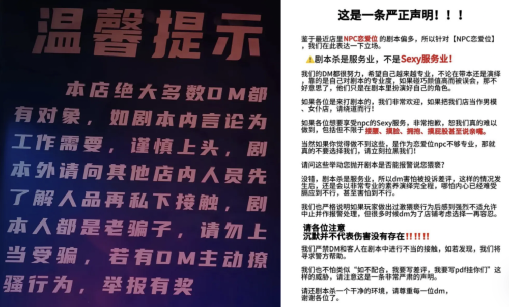 于是,连做恋陪本的店家都忍不住发出“反诈声明”——“剧本人都是老骗子,请勿上当受骗。”