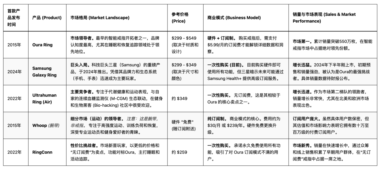 然而,Oura 凭借创新单枪匹马开创的这片“蓝海”,正因其巨大的成功而迅速吸引众多追随者和科技巨头的目光,市场正迅速“染红”。