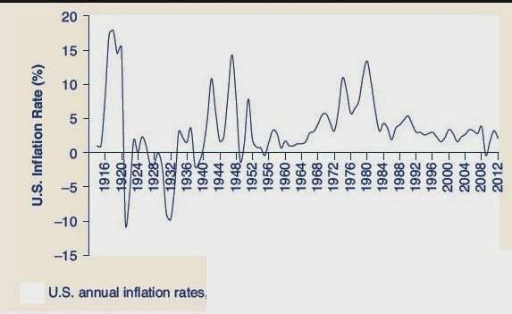 在整个世界历史上,过去一百年有几次标准的通胀走高: