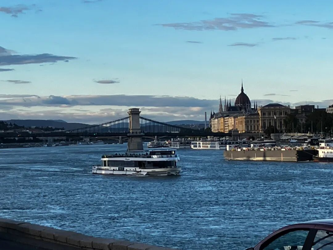 图2横跨多瑙河的塞切尼链桥(Széchenyi Chain Bridge,完工于1849年)和佩斯一侧的匈牙利国会大厦,哥特复兴式风格的圆顶与尖塔,让人印象深刻。|图源:笔者拍摄