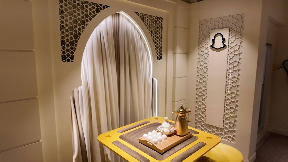 又比如,Snapchat在利雅得新办公室还专门为创作者修建了一个“Majlis Snap for Content Creators”(创作者会客厅),在中东北非,Majlis是一种随处可见的文化,这个词在阿拉伯语中意为“就坐的地方”或“客厅”,过去的 Majlis 是一顶羊毛帐篷,男子聚集于此讨论宗教、政治和贸易问题。