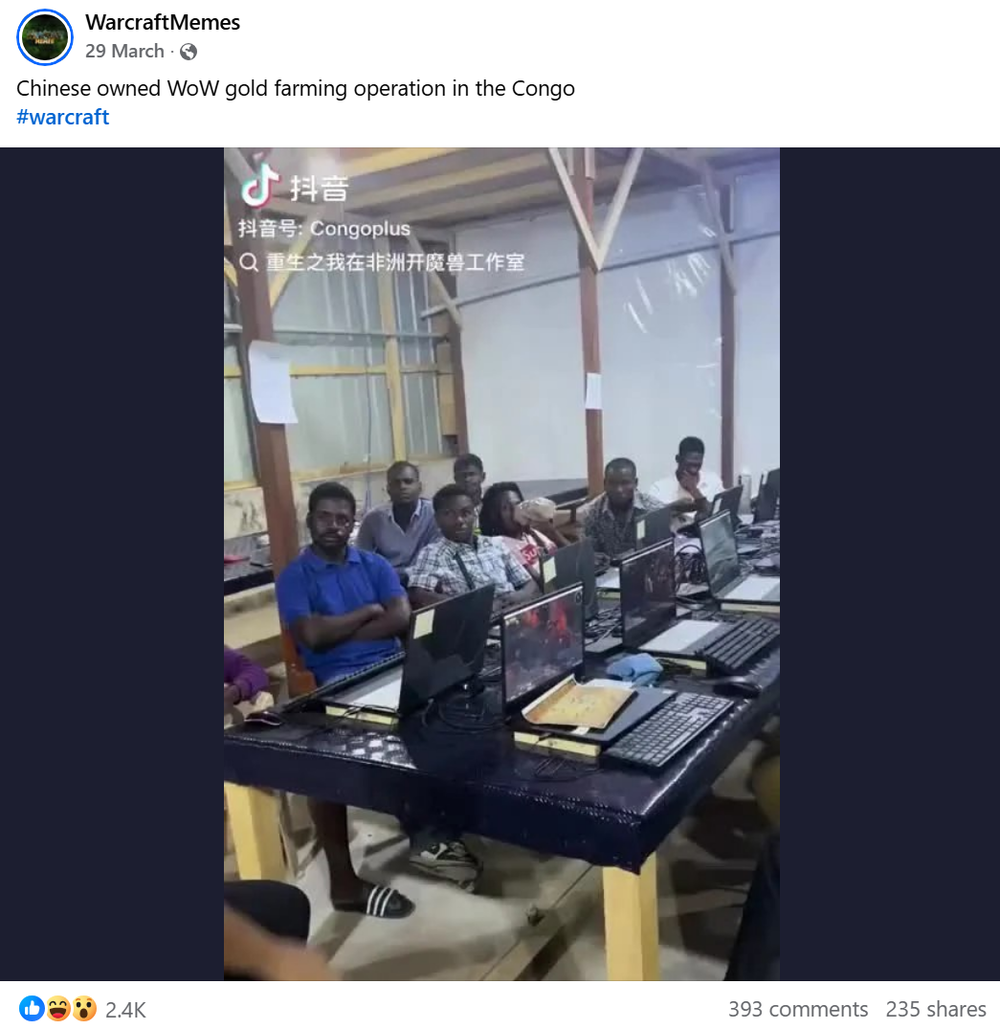 因为当年的中国,无疑是现在非洲的ProMax版,既有良好的水电网基建,劳动力也廉价丰富,国人的平均受教育水平更是远超非洲兄弟,自然成了国际代练产业链上的扛把子。