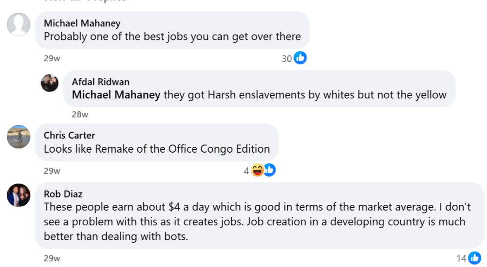 要知道非洲哥们儿的工作时间可是妥妥10小时+,摊下来时薪就几元钱,还不如国内网吧开台机子的花费高,剩余价值拉满。