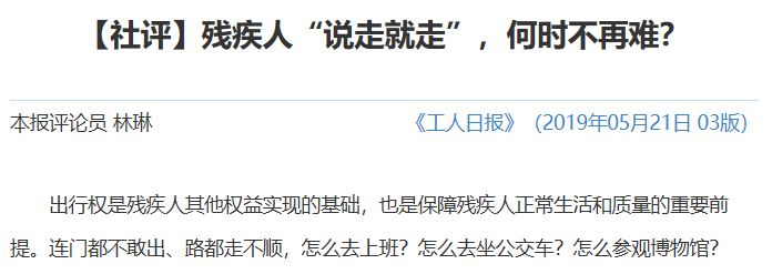 这个“不当人”,并不一定是恶意的,就是“没当回事”,他们不知道残疾人出行有多困难,更看不见残疾人。