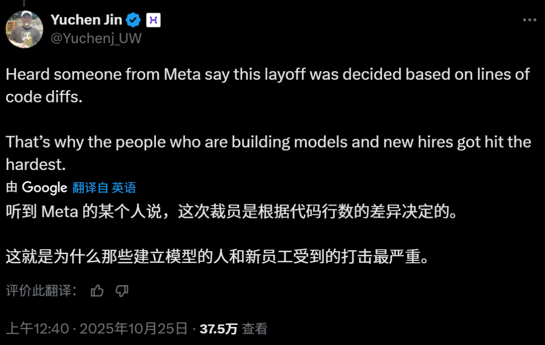 就在这两天,Meta超级智能实验室大裁600人,有消息称公司简单粗暴到使用代码量决定裁员名单。