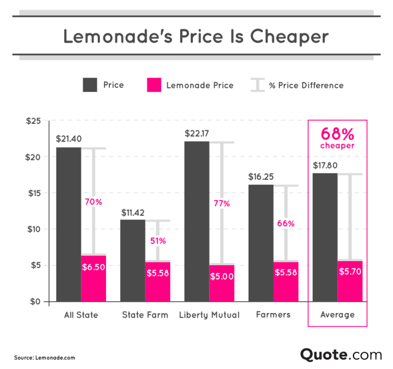 Lemonade的产品价格比其他竞争对手平均便宜68%,数据来源于Quote.com