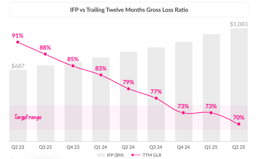 原因是虽然AI减少了人员工资等固定运营成本,但是行业里更加看重的综合成本率(Combined Ratio)即便在最近的2025年二季度财报中仍然高达到1.84(赔付率0.7+费用率1.14)。这意味着公司每收入1美元保费,需要支出约1.84美元用于理赔和运营等承保相关成本。