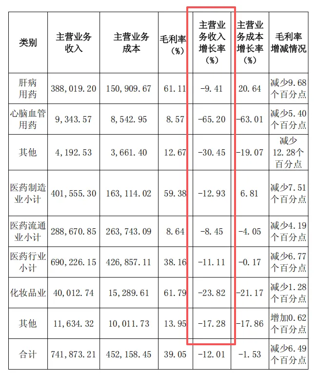 核心产品肝病用药片仔癀系列,前三季度营收38.8亿元,同比下滑9.41%,毛利率骤降近10个百分点。