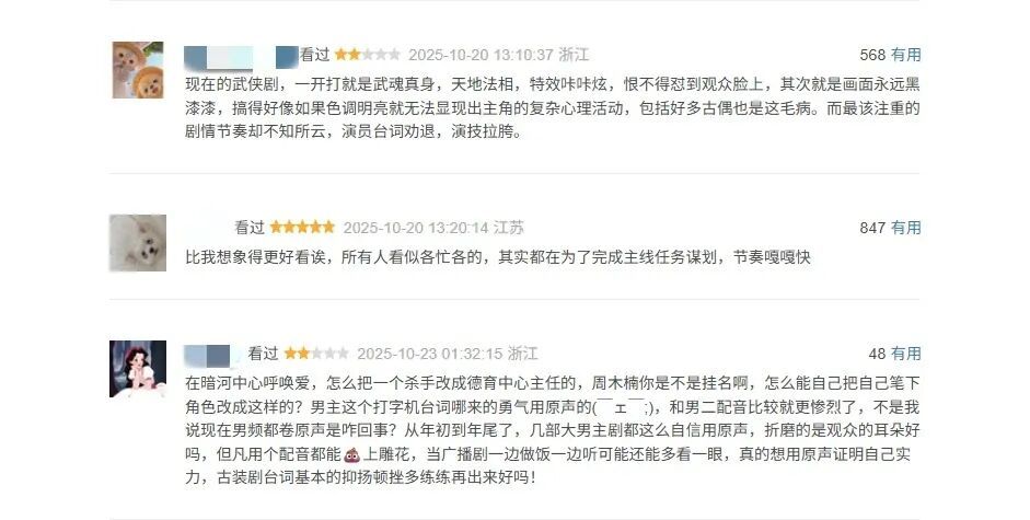 综合来看,《暗河传》目前的口碑争议,一部分源于普通观众对于“武侠”类型与剧集实际风格之间的认知偏差。尽管该剧被官方明确与《凡人修仙传》等仙侠剧区分,且制作方一再强调其实景打戏的革新性,但部分观众仍因角色造型的“仙气飘飘”和原著自带的仙侠标签,产生了不同于传统武侠剧的预期错位。