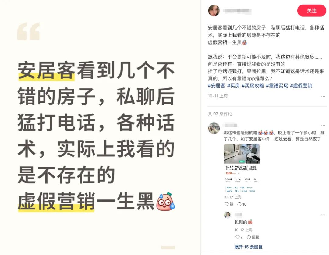 但是,买衣服出现卖家秀和买家秀完全不同,大不了还能退货,以后下单时也会变得更谨慎。可房子不是衣服,你损失的不是来回的邮费,而是一个奔波着看房的周末、交通费,以及被撩拨起的 “对家的想象”。