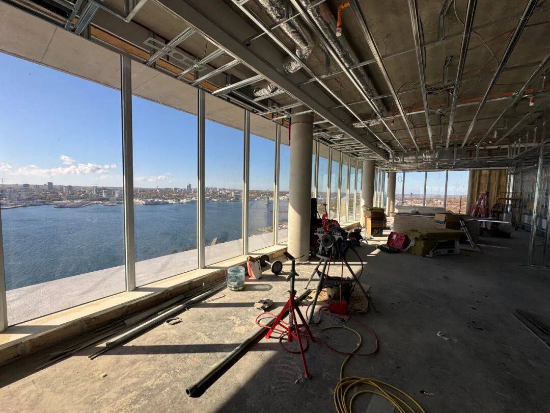 最近我在跟公司做一个项目,就在海边,面朝大海,俯瞰整座城市和海港。