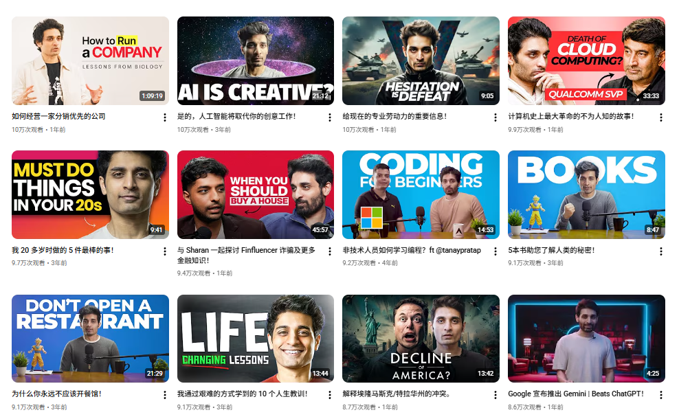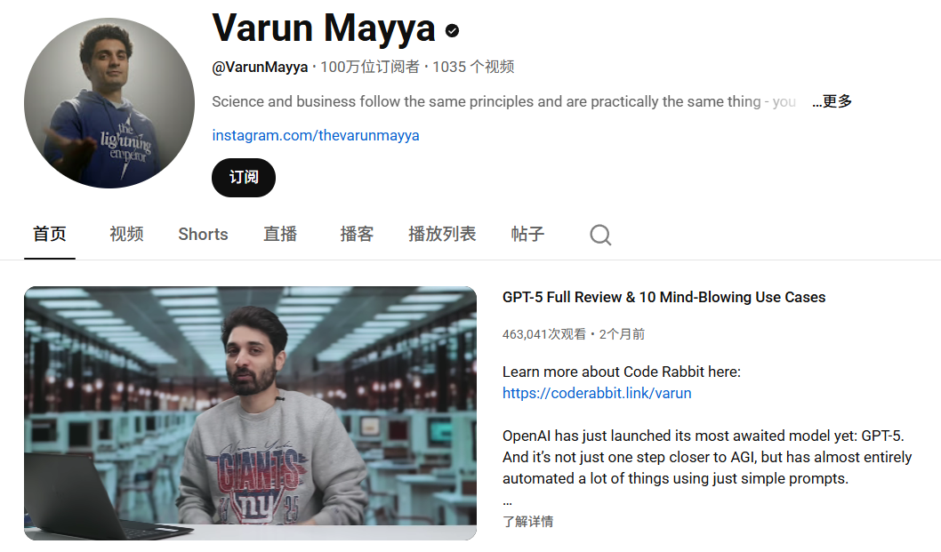 Varun自 2018 年开始经营自己的油管频道,早期主要分享创业经验,随后逐渐转型为科技博主,介绍AI等前沿技术,如今算得上是油管头部科技博主,微软CEO、OpenAI CEO、万事达首席技术官等科技领域的翘楚都曾做客过他的频道。