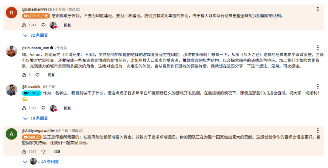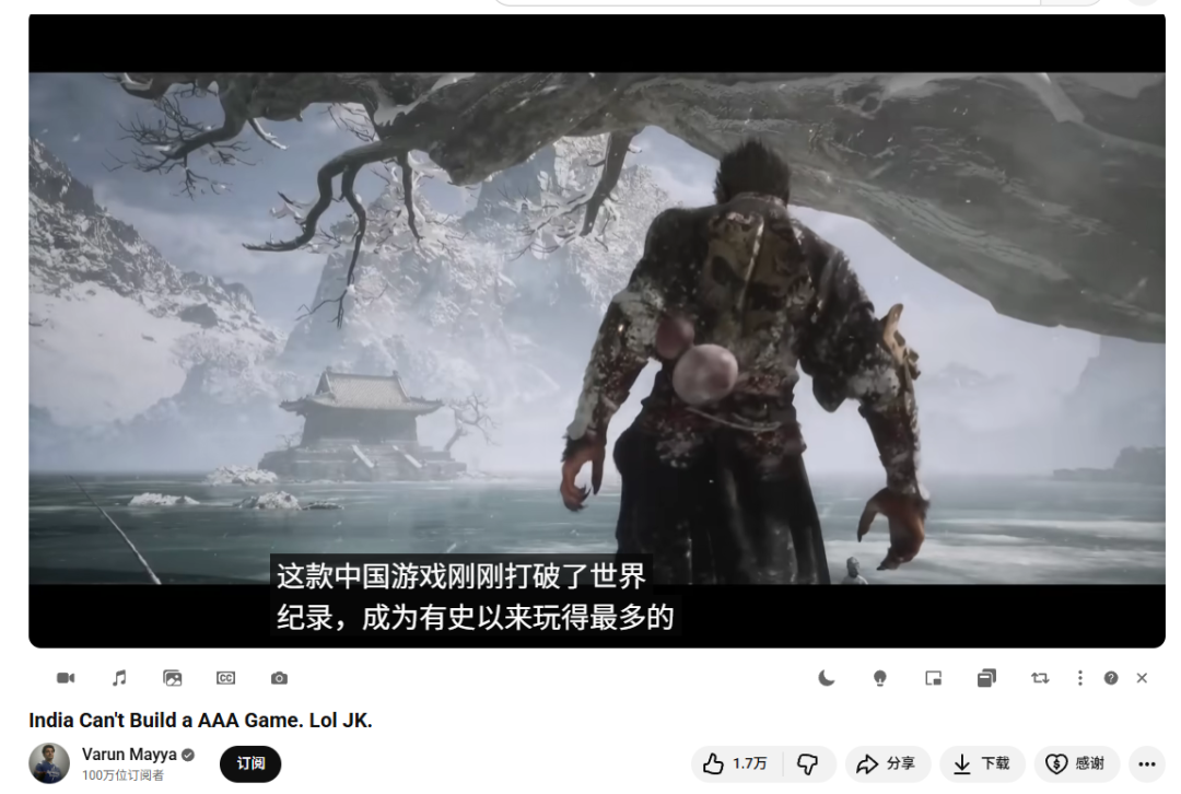 值得一提的是,去年《黑神话:悟空》发售后一个月,Varun发布了一支视频,深入分析了这款游戏成功的原因,并且对比了中印两国游戏产业的现状。当时的他在视频中得出一个结论:“印度短期时间内无法打造3A级别的PC游戏。”