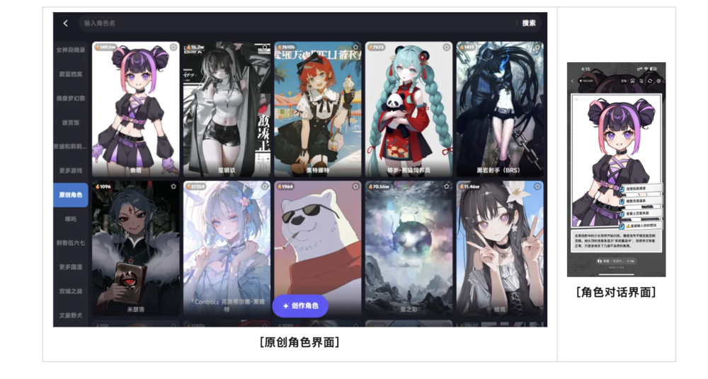 从这个角度看,“角色创作”是一个潜在需求近乎无穷的领域,可以与真人社交、刷视频等主流需求并列,称为互联网时代的“根本性需求”之一。哪怕自己不想创作角色的人,也不会拒绝与他人创作的角色进行二创和互动——在捏Ta,以及任何OC社区,都存在大量的只欣赏别人捏的角色的人。原创、二创、互动,这三种行为承载了不同的人群对角色的不同诉求,总而言之都是很巨大而且很真挚的需求,能够提供源源不断的情绪价值。