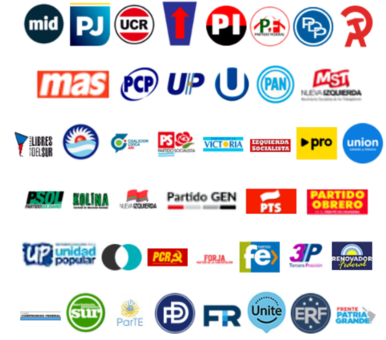 今年阿根廷有党徽或选举标志的所有全国性政党列表(不包括非法政党和拥有党组织少于5个省的政党)