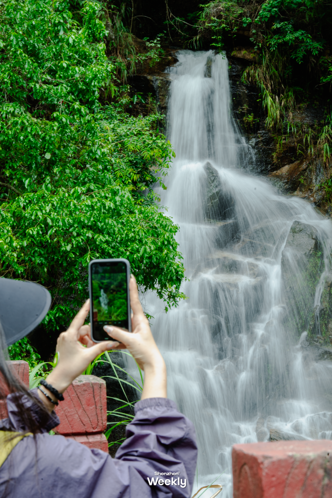 园山风景区不仅有自然生态,也有历史建筑,可玩性强。坂田雅宝水库周边,一桩瀑布矗立在山中,溪水急促清冷,带来一丝夏日的清凉。