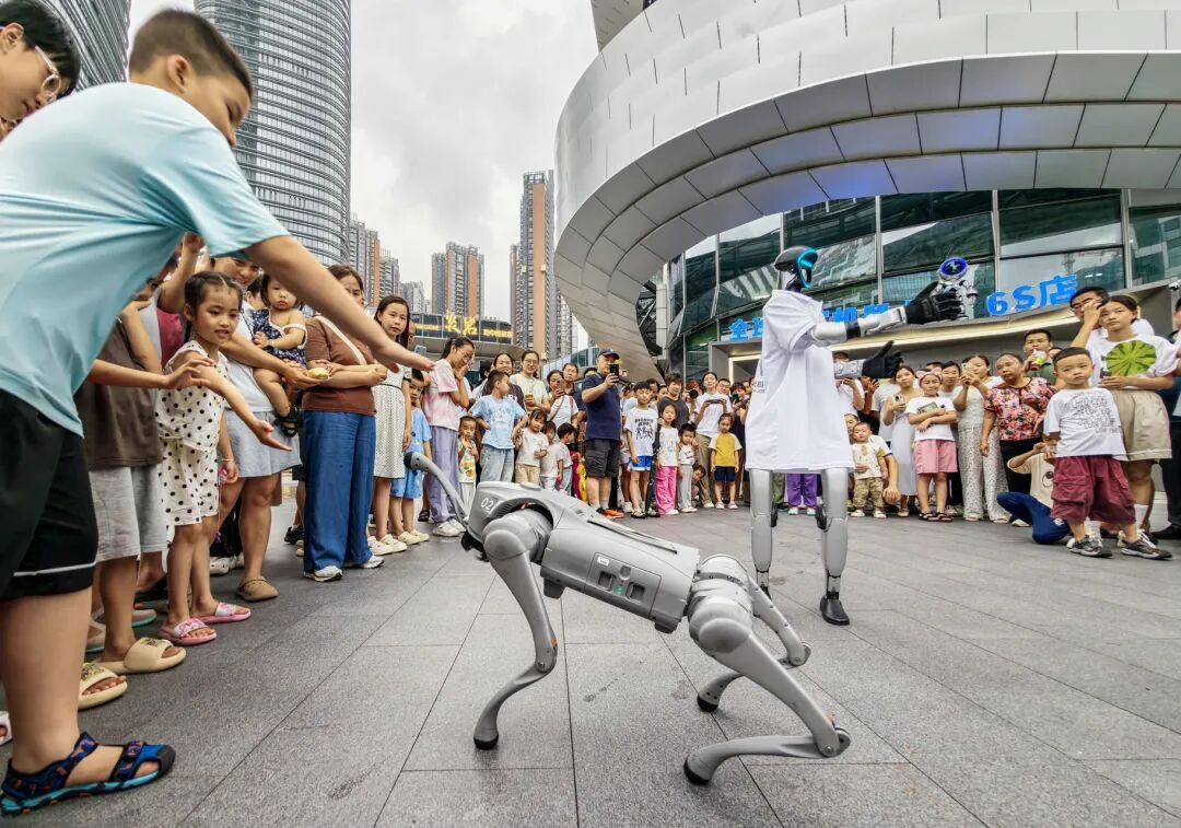 整条街区仿佛科幻片现场:空中无人机送餐、地面机器狗送货、水下机器人测试,24小时机器人商店提供从煎饼果子到咖啡拉花的全自动服务。
