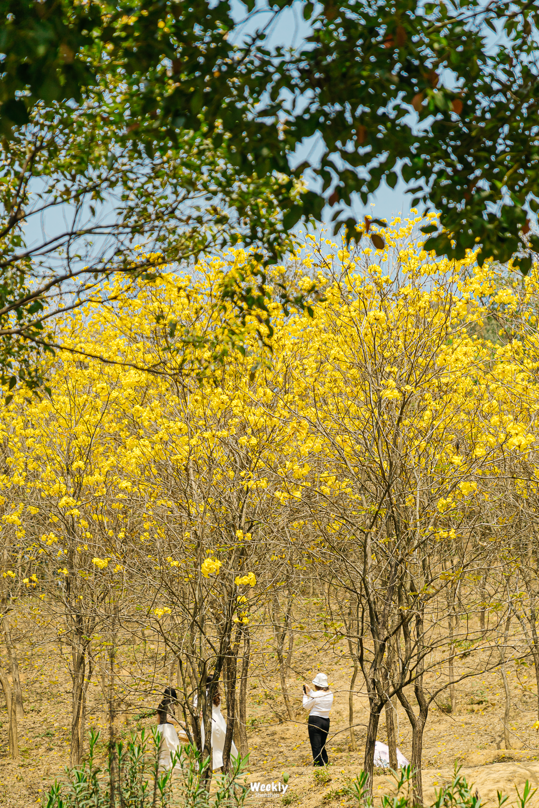 平湖生态园的桃花岛,浪漫温柔。黄花风铃木森林繁密茂盛,春光都裹着暖暖的惬意。