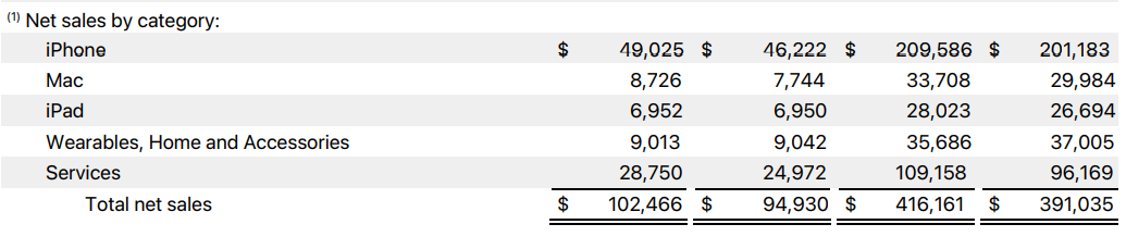 而从财报上来看,季度内毛利率走高主要还是得益于软件服务业务的“托底”。财报显示,期内苹果公司软件服务业务的收入同比增加15.1%,达到288亿美元,而毛利率则达到了75.3%的历史高位。