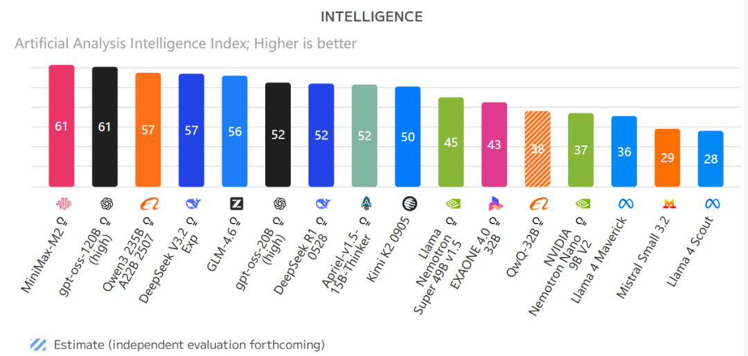 在第三方的基准平台 ArtificialAnalysis 上比较和分析模型质量、性能、推理速度、上下文窗口、参数数量和许可详情等性能指标,排行前列的也大多数是国产模型。