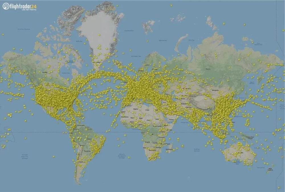 这张图是2019年的某一天,那一天创造了一个纪录,同时有2万多架飞机在天上飞。
