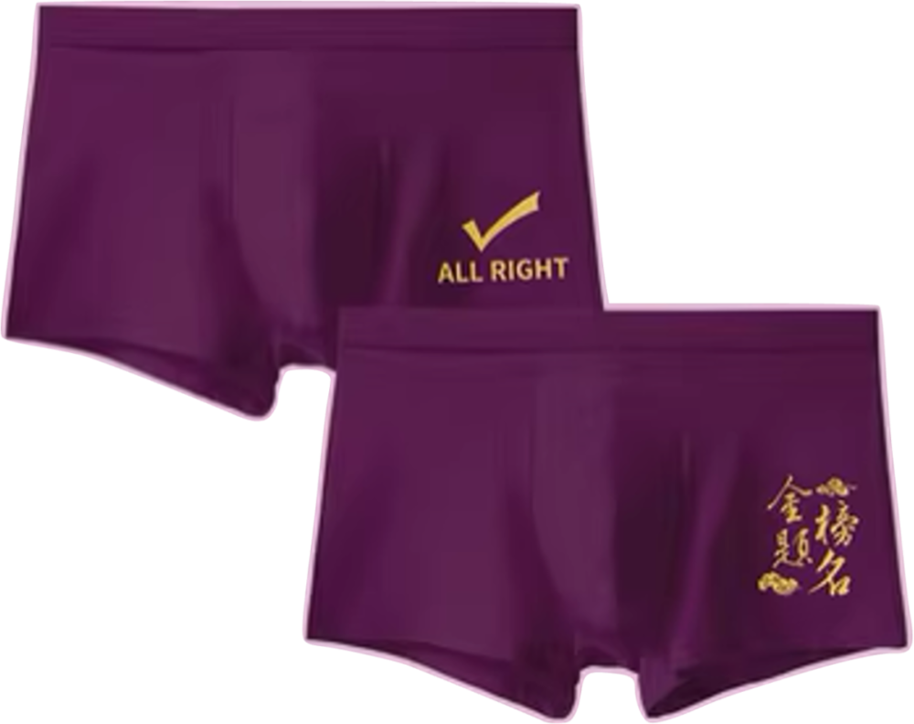 考试专用内裤,大家去淘宝上搜一下,每年到中考高考的时候,销量是非常可观的,叫“紫腚能行”。