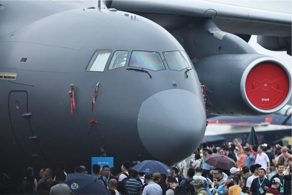 除了这个之外,你看,这是我们空军的运-20在珠海航展的现场。飞机上有很多红布条,这个红布条上写着几个字,叫“起飞前取下”。
