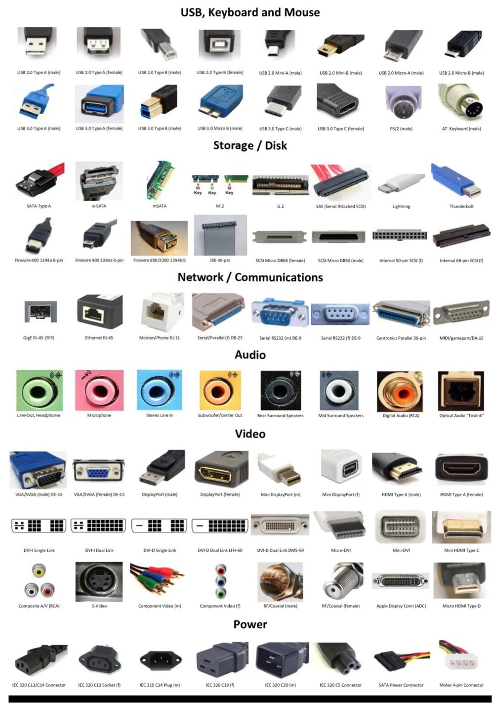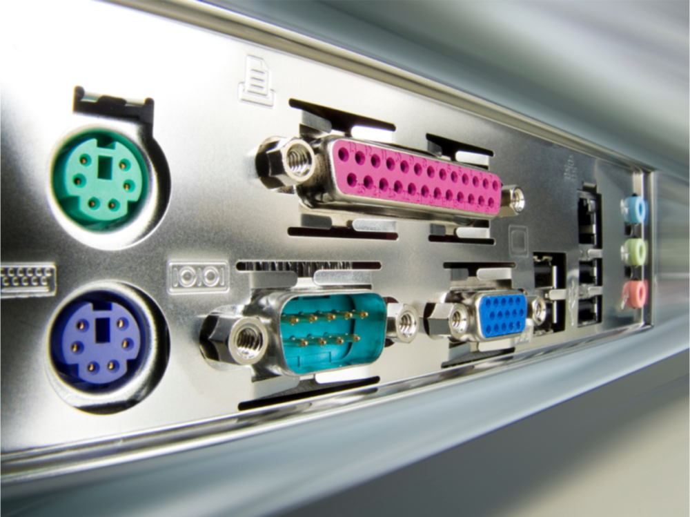 你看,这里有好多不同的插座,哪个是插鼠标的、哪个是插键盘的、哪个是插显示器的、哪个是插打印机的,都不一样。