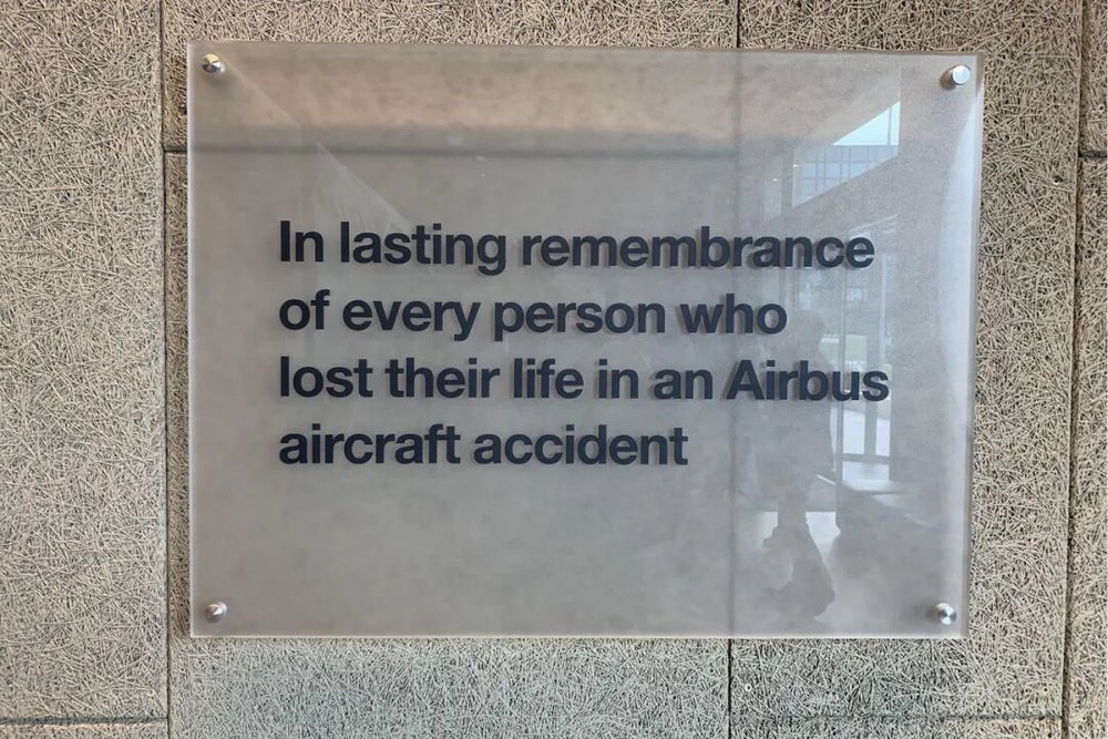 在这个安全促进中心最后的地方,有这么一块牌子:纪念所有因空客飞机空难死亡的受害者。