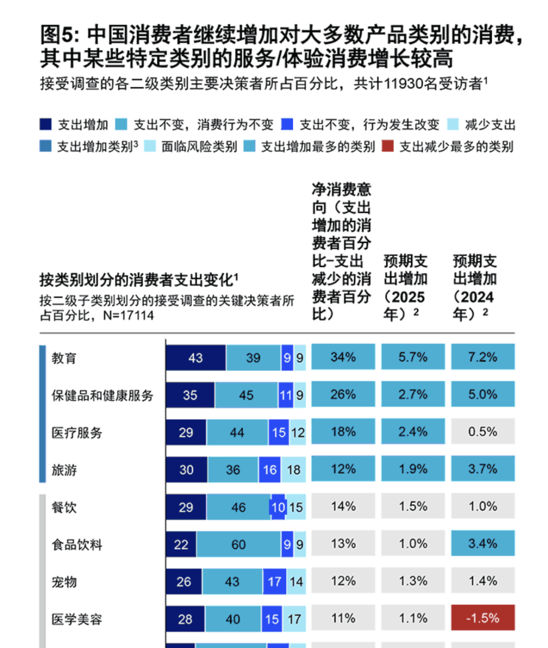 无独有偶,咨询公司麦肯锡在《2025年中国消费趋势调研》里也发现,跟前两年比起来,调研对象表示消费占可支配收入比例持续降低中。