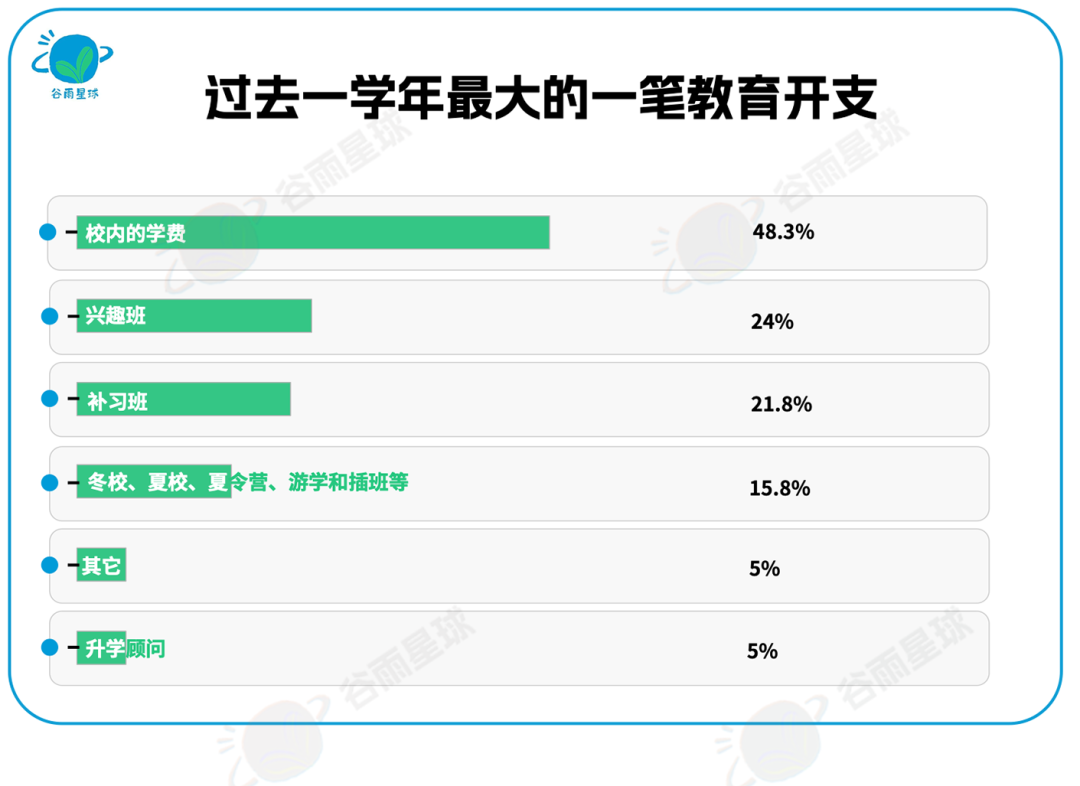 “去年我还有很多心思鸡娃,今年第一目标只想怎么省钱和搞钱。”有一位家长在谷雨群开玩笑说道。而这也能从此次的调研结果能看出端倪。