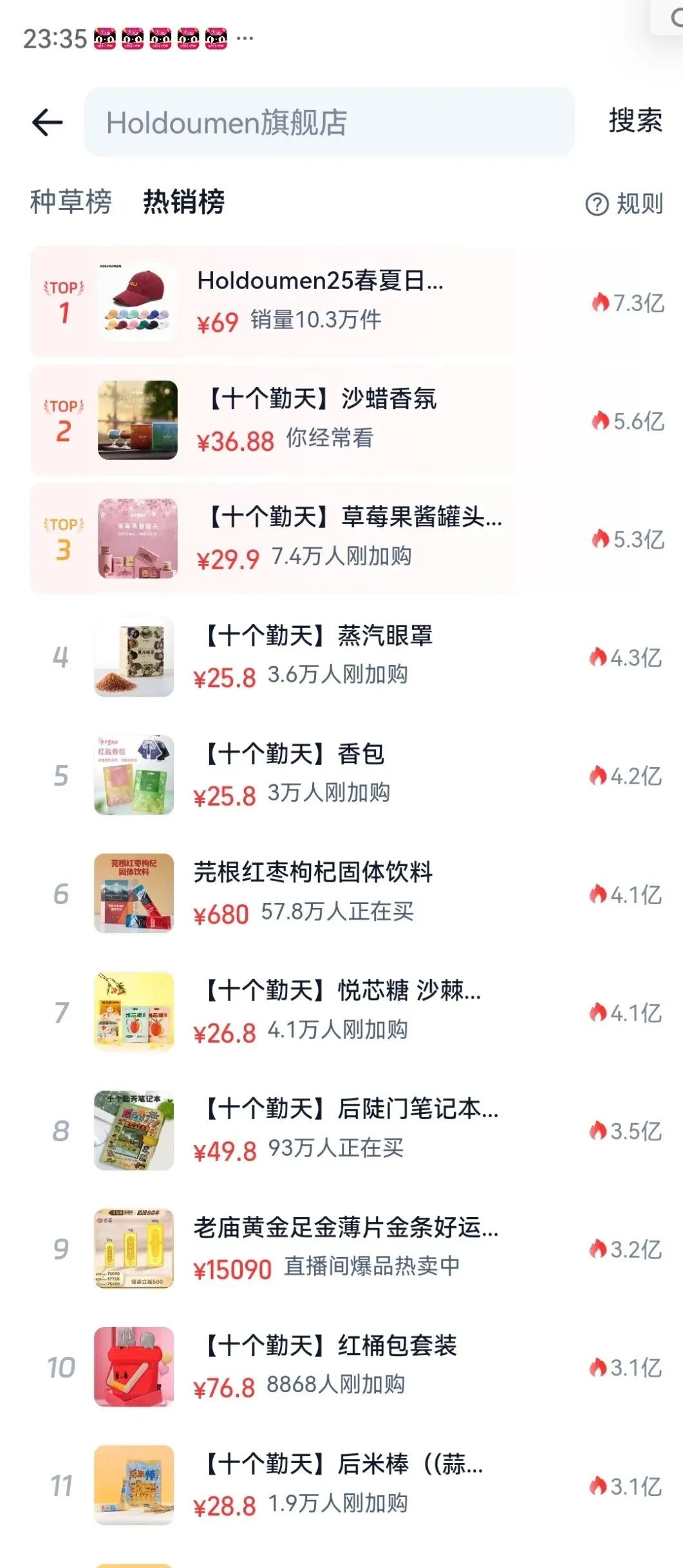 据20社统计和粉丝自行统计,那场直播总销售额达到9000多万元甚至破亿,直播后“十个勤天”带货的商品更是直接霸占了淘宝实时热销榜。粉丝们自豪地晒出截图说:“家禾们战斗力太强了,直接屠榜!”