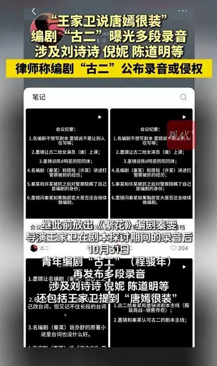 前段时间,我们发文聊了编剧古二与电视剧《繁花》剧组之间的纠纷。没想到事情还有后续,10月31日,编剧古二再爆惊人录音。如果说此前的录音,还在捍卫自己对编剧署名的诉求的正当性,那么这一次,完全是以单刀直入的方式对准了最核心、最重要的角色:王家卫。