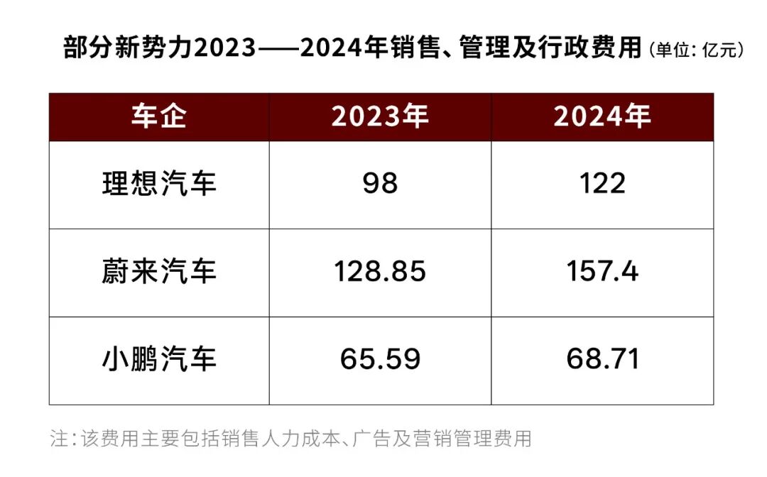 理想汽车则在其财报中透露,其销售、一般及管理费用在今年上半年约52亿元人民币,同比减少9.4%,主要由于雇员薪酬减少及营运效率提高。
