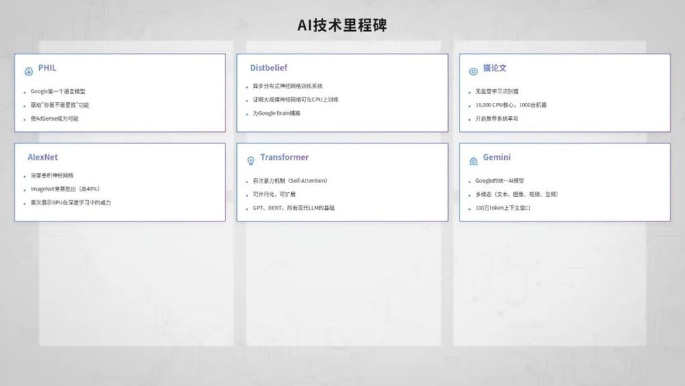 2017年,Google Brain团队发表了Transformer论文——这篇论文催生了OpenAI的ChatGPT、Anthropic、以及NVIDIA市值的暴涨。整个AI革命都建立在Google的这一项发明之上。