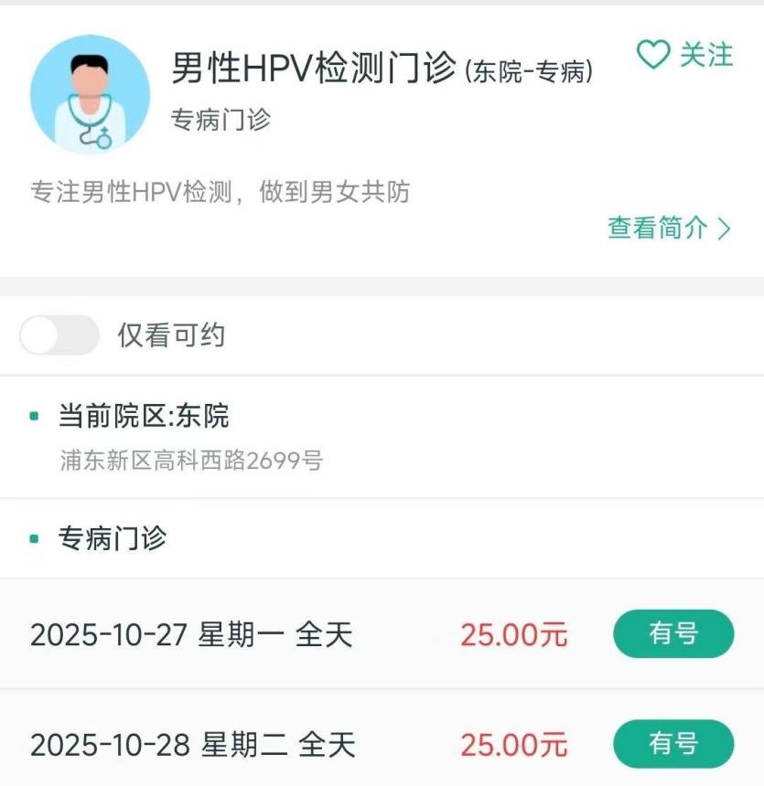 此外,关注自身及伴侣生殖健康、希望共同筛查HPV的男性,或者任何希望获取与HPV有关的健康咨询的男性,也可以挂这个专科的门诊。