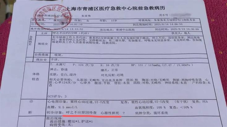 2025年8月14日,一名年仅15岁的高一女生在军训第四天突然晕倒,经现场急救无效不幸离世。根据其母亲周女士提供的院前急救病历,其死因疑似“心源性猝死”。这一诊断结果与大众通常认知形成强烈反差——心源性猝死往往被认为多见于中老年群体,或本身有心脏基础疾病、长期高压劳累的人群。而据家属反映,该女孩身体素质良好,并无心脏病家族史。