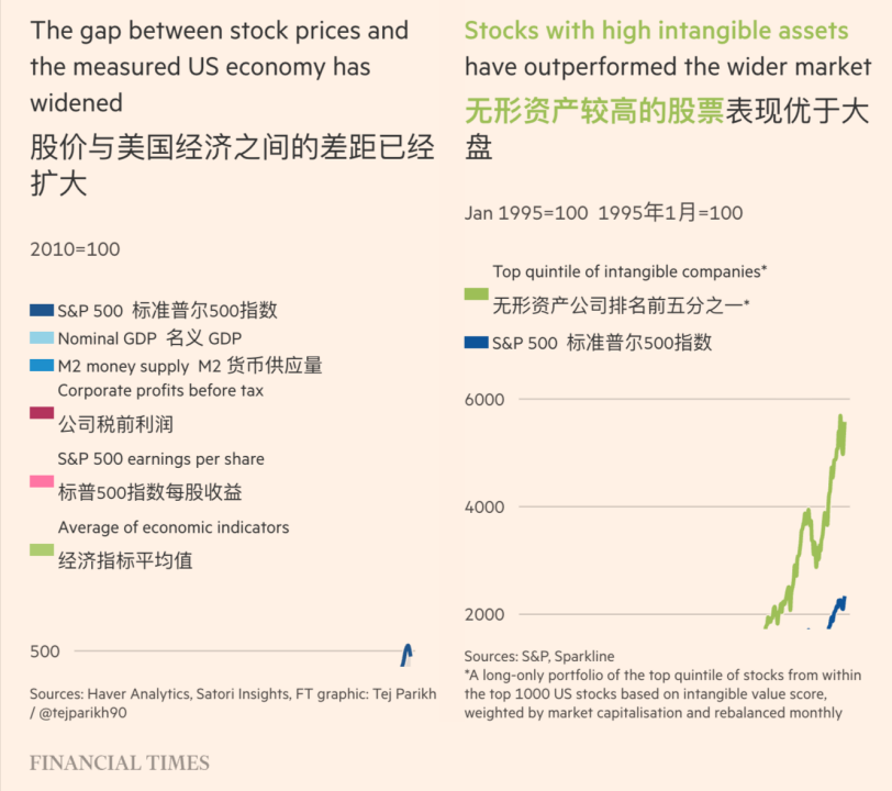 五十年前,标准普尔500指数公司的资产,绝大多数是你看得见、摸得着的物理资产——工厂、设备、库存等 。