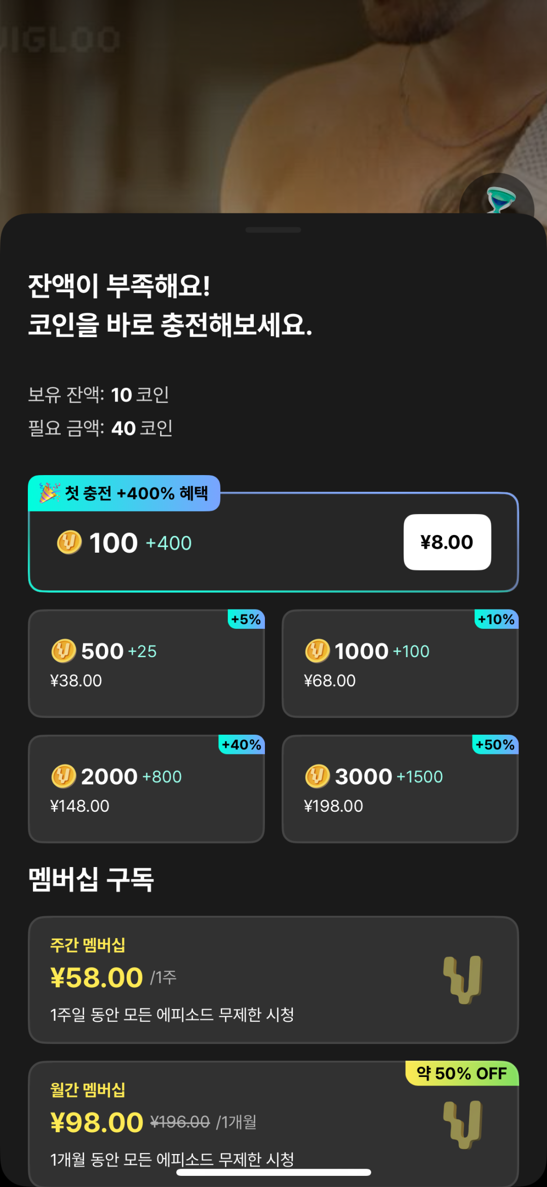 换句话说,韩国短剧不够有“性价比”。目前韩国短剧平台上采取了广告解锁、单集付费和订阅制的模式。以韩国本土短剧平台vigloo为例,一周会员价格人民币58元,月度会员98元,而韩国网飞的标准月度会员费约合人民币71元。