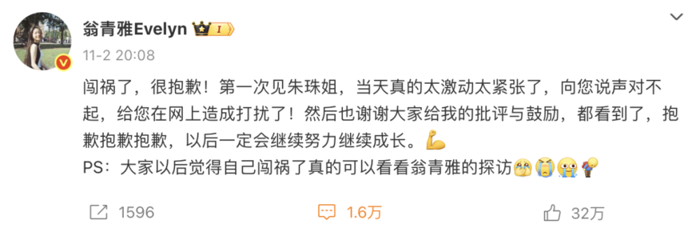 虽然品牌直播通常是以宣传新品和品牌态度为主、按流程走的营销动作,对于主持人的专业功力不会有过于苛刻的要求,但基本的控场能力、采访能力是必需品。翁青雅虽然是传媒教育背景,但此前并未从事相关职业,品牌方显然也没有深度了解以翁青雅的实力能否控住整个直播采访,才导致出现了“尴尬到不敢看”的低级错误。